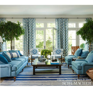 Schumacher Santa Monica Ikat Linen Curtains Blue & White Drapes