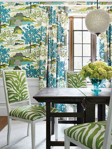 Thibaut Ridgefield Custom made Linen Curtains Green & Spa Blue Drapes